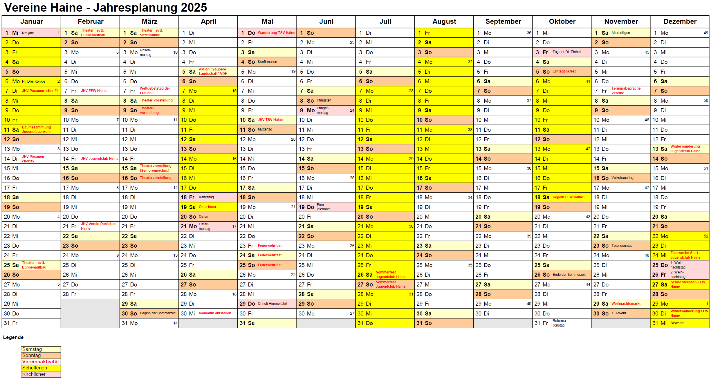 Termine der Örtlichen Vereine Haine 2025