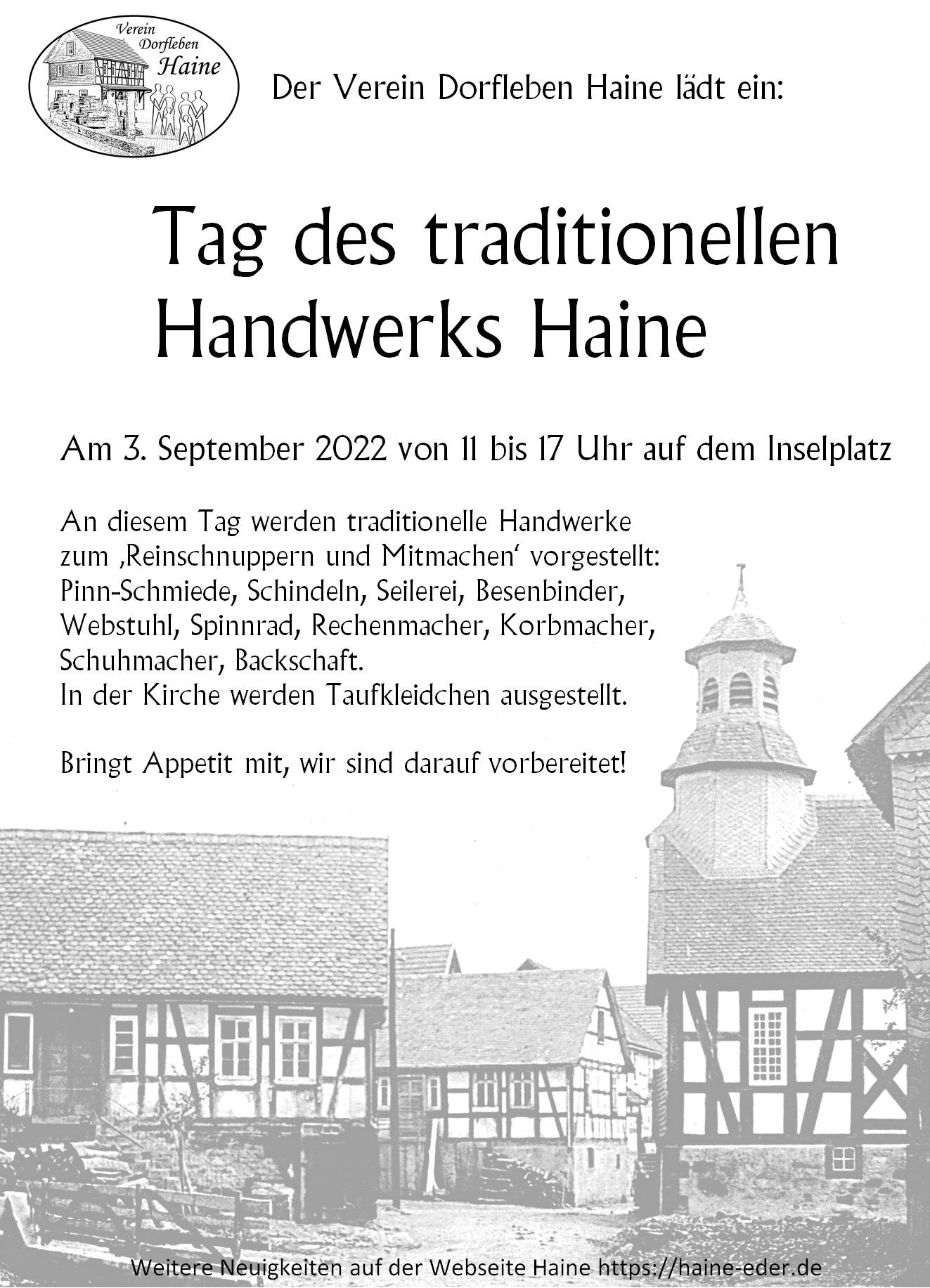 Veröffentlicht am 16.08.2022Ankündigung ‚Tag des traditionellen Handwerks Haine‘ Zum Kalendereintrag….