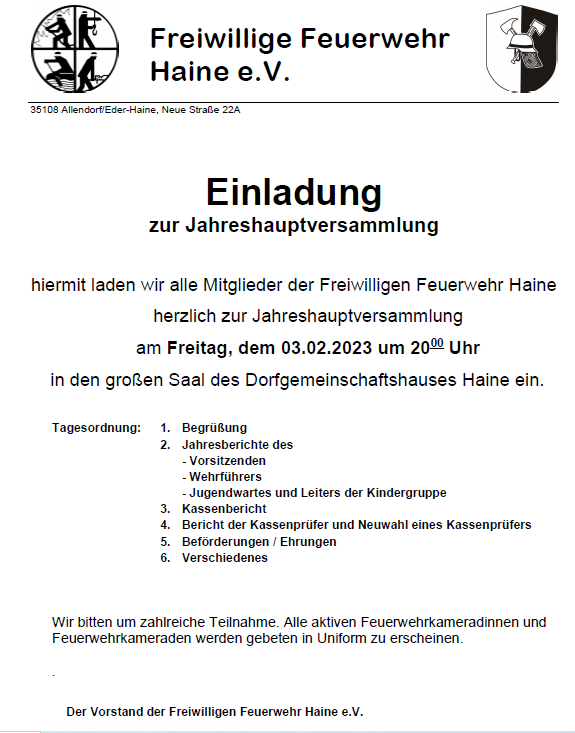 Der Vorstand der Freiwilligen Feuerwehr Haine e.V.