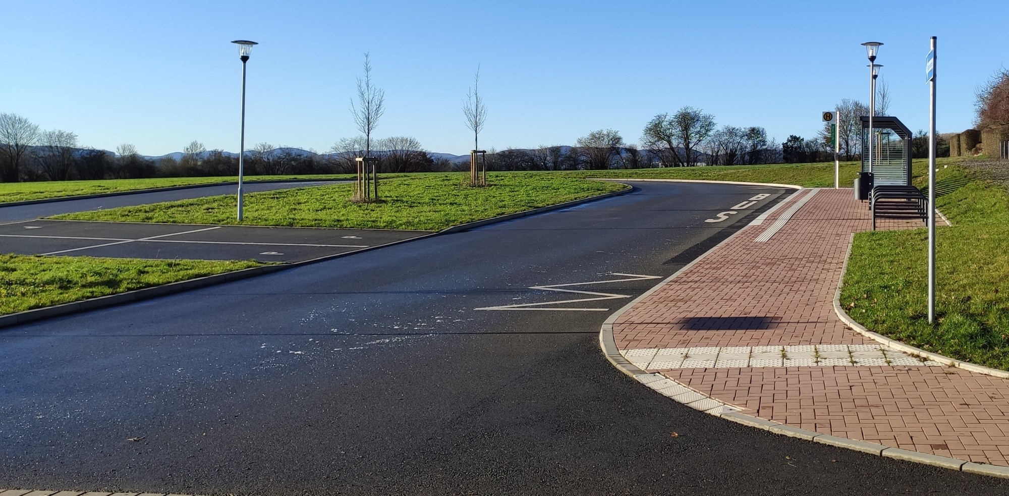 Direkt am Ortseingang befindet sich eine gute beleuchtete Haltestation mit Parkplätzen und Fahrradständern. Diese Haltestelle wird von zwei Buslinien und einem Anrufsammeltaxi der NVV regelmäßig angefahren: